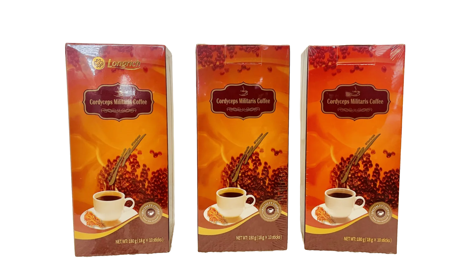 Discover the power of Cordyceps militaris Coffee: a unique blend of premium decaffeinated coffee, cultivated Cordyceps mushroom, palm kernel oil, and essential amino acids. Engineered to help you feel energized, focused, and emotionally balanced—without caffeine crashes.