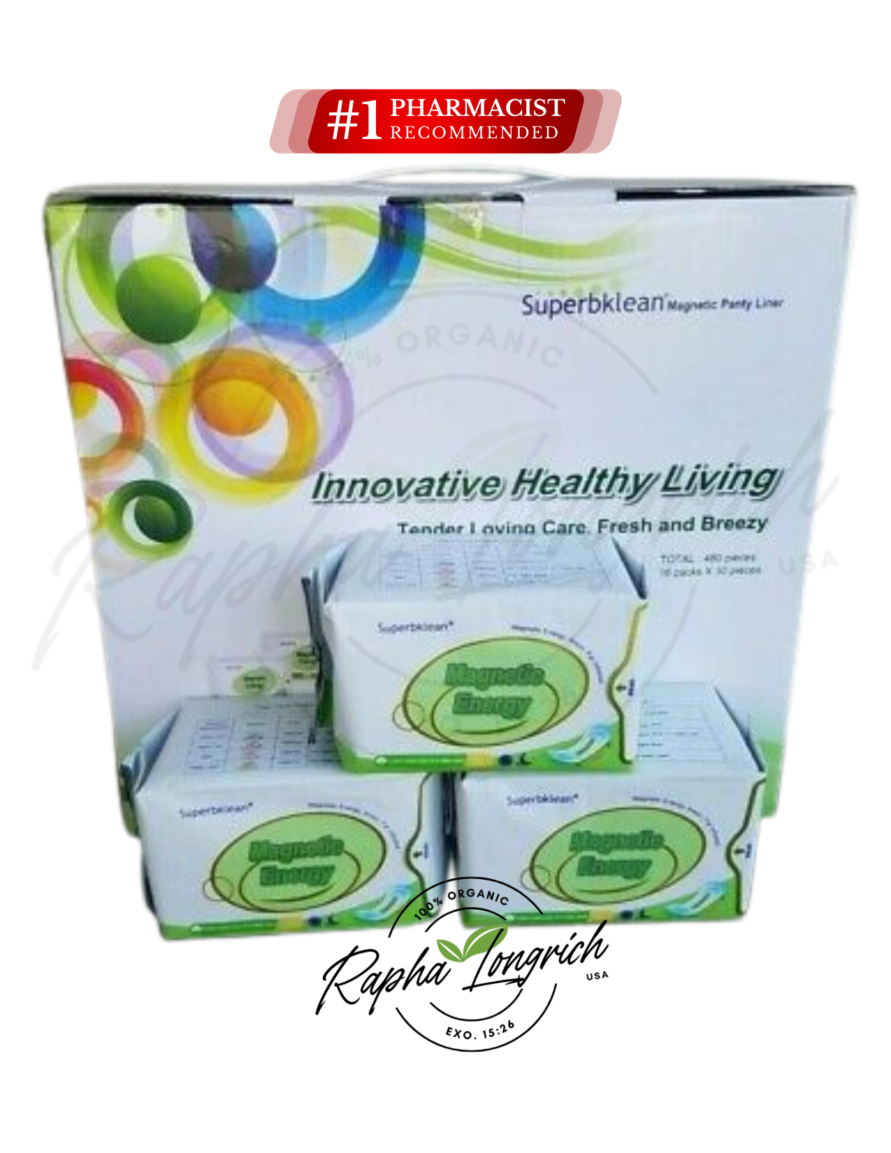 Enjoy daily freshness and health support with Superbklean Magnetic Panty Liners. Infused with negative-ion, magnetic, and far‑infrared (FIR) strips, these liners help reduce odor, relieve itching, and enhance circulation while keeping you comfortable and clean.